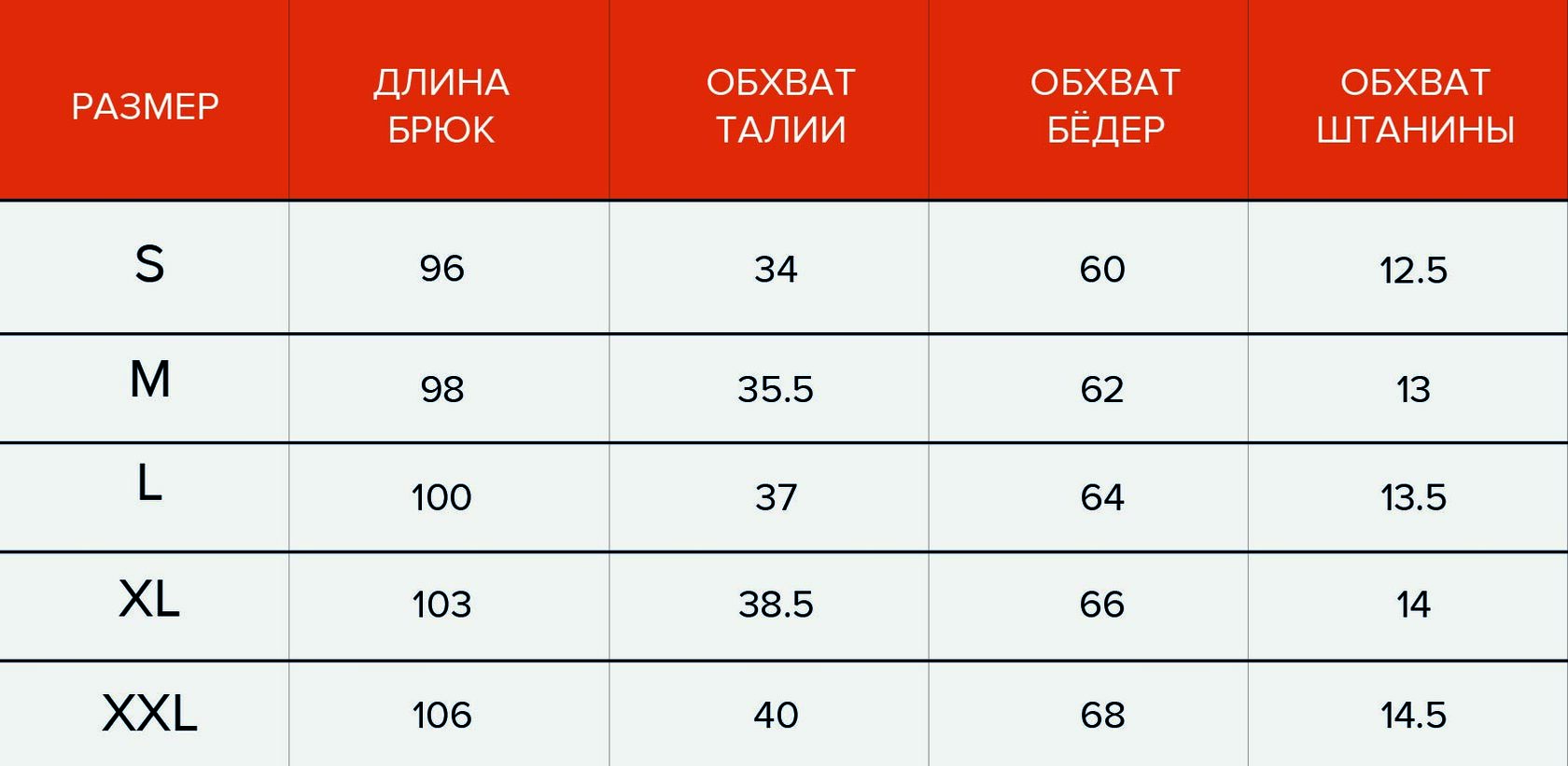 Таблица размеров